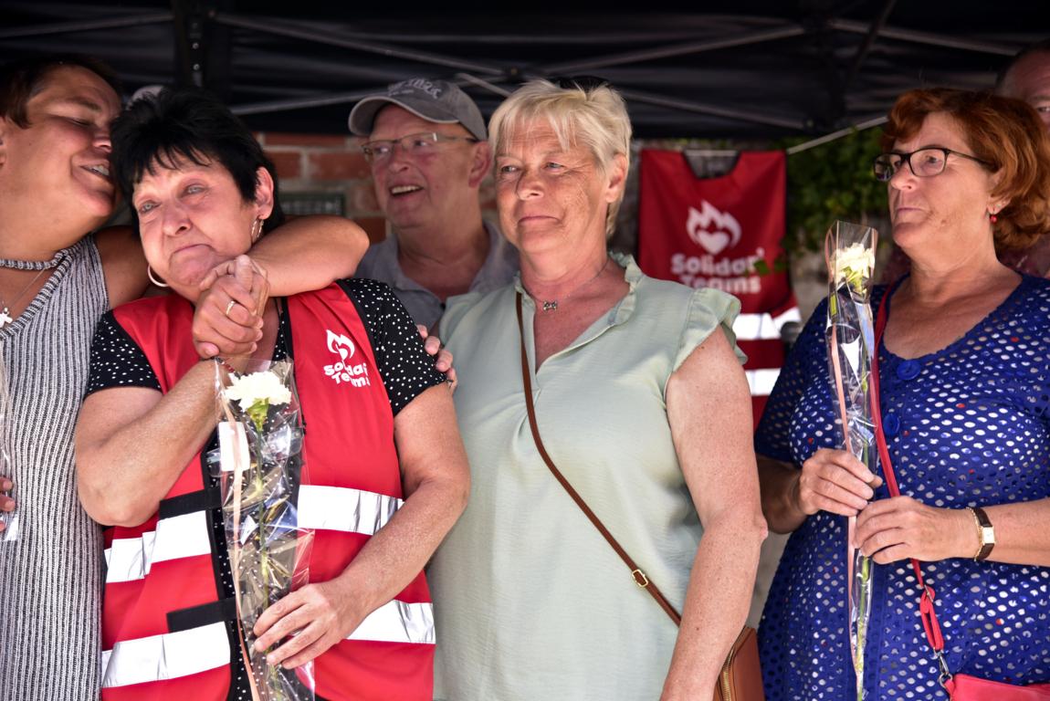 “De SolidariTeams, dat zijn geen woorden, maar daden”, legt Andrea Cotrena uit. Zij coördineerde enkele maanden het werk van de teams vrijwilligers die in Verviers en omstreken kwamen helpen. “Terwijl de burgemeester van Verviers anderhalve maand na de overstromingen zei dat de slachtoffers zichzelf maar weer moesten zien te beredderen, hebben jullie ons niet in de steek gelaten. Jullie bleven elke week komen. Ik zeg meer dan 3.000 keer dankjewel tegen jullie. En ik zeg duidelijk géén dankjewel tegen de verzekeringsmaatschappijen, die winst maken terwijl de slachtoffers nog steeds op hun centen wachten.”