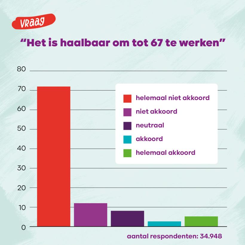 Op de stelling “Het is mogelijk om te werken tot 67 jaar” antwoordde 84% van de respondenten dat ze het daarmee oneens zijn.