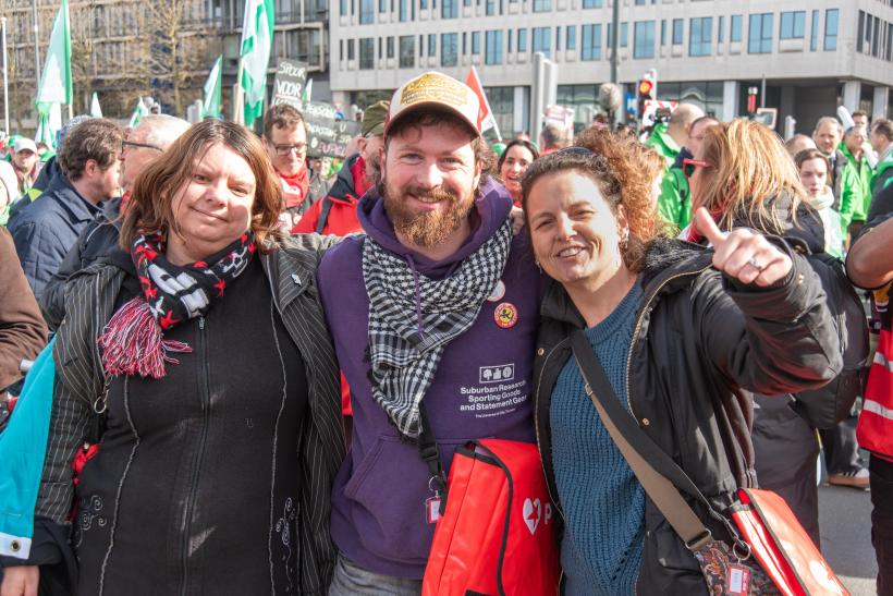 Vanessa is al 17 jaar lid en schrijft: “Je kunt veel zeggen, maar ik spreek over wat ik zelf meemaak. En wat ik zie, zijn concrete acties op het terrein. Mensen die aanwezig zijn op straat, dicht bij de realiteit, die luisteren, ondersteunen en handelen. Ik denk aan moeilijke momenten zoals de overstromingen in de Vesdervallei, waar solidariteit geen hol begrip was. Ik denk aan de coronaperiode, waar we ondanks beperkte middelen hebben meegeholpen: het uitdelen van zelfgemaakte mondmaskers, steun aan ziekenhuizen, kleine gebaren voor mensen die het moeilijk hadden. Ik denk ook aan al die strijd tegen onrechtvaardige beslissingen, aan al die gesprekken met mensen op het terrein, ongefilterd.”
