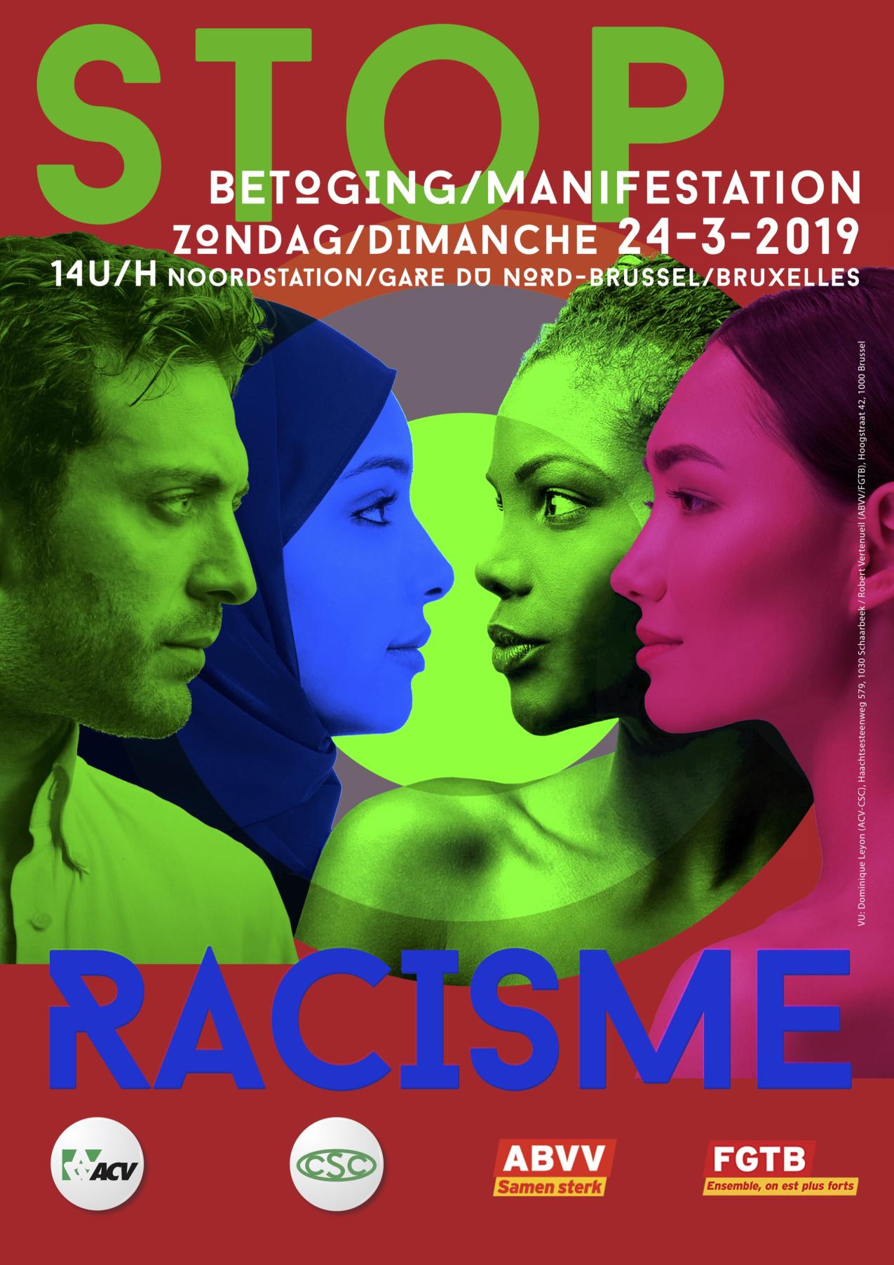 “Racisme en discriminatie hebben een vernietigende impact op mensen en op onze samenleving”, ACV, ABVV en Platform 21/03 roepen op om op 24 maart op straat te komen tegen racisme. Ze schuiven 6 concrete eisen naar voor.