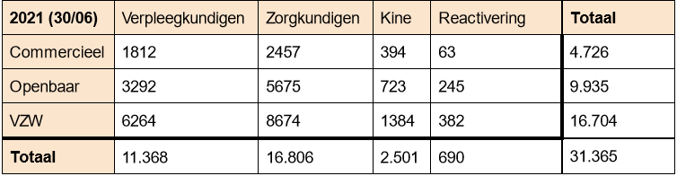 - Er zijn amper 3 zorgkundigen bijgekomen. Wel 106 verpleegkundigen en 102 kine’s.