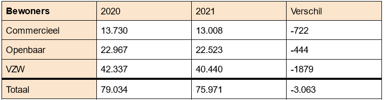- Er zijn maar liefst 3.063 bewoners minder in onze woonzorgcentra als vorig jaar.