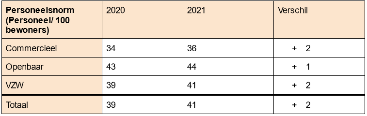 - Het aantal personeelsleden per 100 bewoners is gestegen van 39 naar 41.