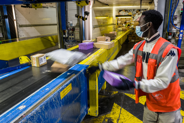 In gigantische verdeelcentra lopen orderpickers tot twintig kilometer per dag, 225 pakjes per uur voor amper 10 euro bruto. (Foto Belga)