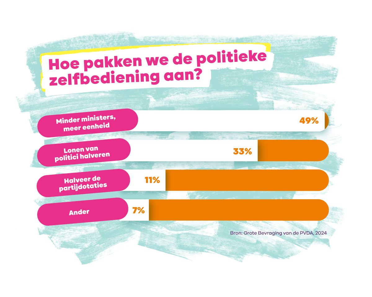 Het is duidelijk dat politici die 6.000 euro in de maand verdienen, hun voeling met wat er leeft in de maatschappij verliezen. Politieke zelfbediening staat als thema niet heel hoog op de agenda bij de mensen, maar er is wel degelijk vraag naar vernieuwing die hier een eind aan maakt.