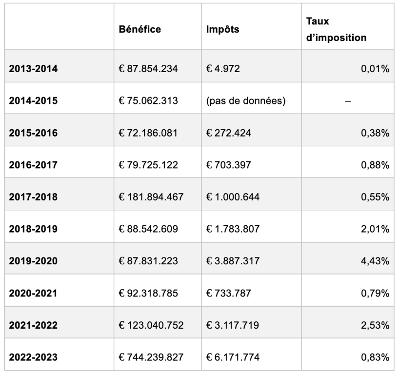 De volgende tabel geeft de belastingen weer die de dochteronderneming Colruyt Gestion in Luxemburg de afgelopen 10 jaar betaalde. Het is dus duidelijk niet in Luxemburg dat ze veel belasting betaald hebben.