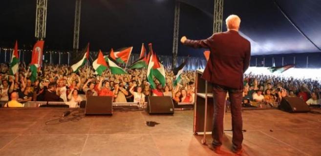 Vorig jaar op ManiFiesta maakten Peter Mertens en het hele publiek een collectieve video-solidariteitsboodschap voor de jonge Palestijnse activiste Ahed Tamimi, die via sociale media, in real time, te horen en te zien was tot in Ramallah.