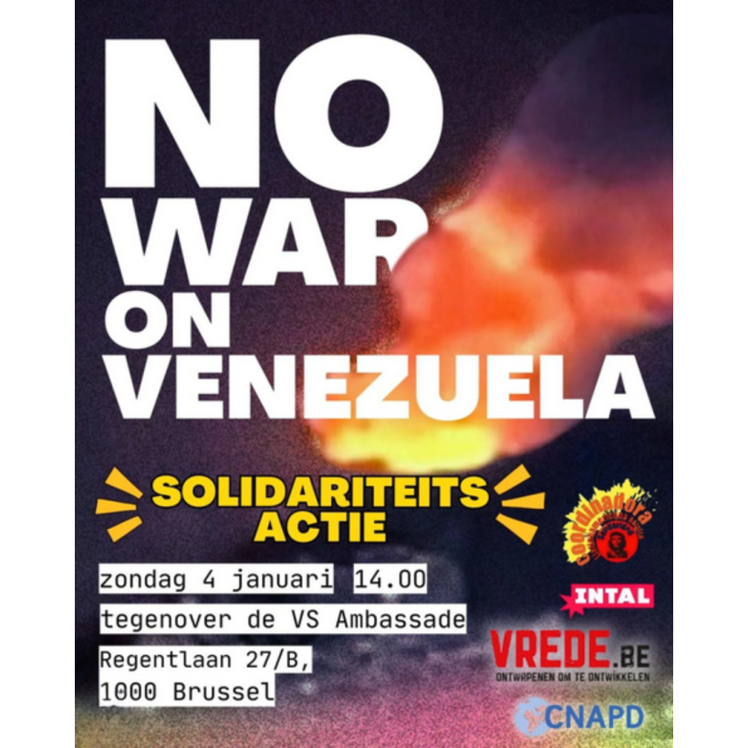 De organisaties intal, CNAPD en Vrede vzw organiseren een solidariteitsactie op zondag 4 januari voor de ambassade van de Verenigde Staten, Regentlaan 27/B in Brussel.