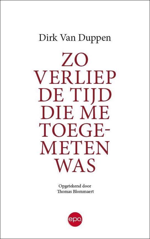 Bertolt Brecht wist al: het mooiste geschenk dat je kan geven is het voorbeeld van je eigen leven. In Zo verliep de tijd die me toegemeten was blikt Dirk Van Duppen terug op een compleet leven. Hij werkt in een leerlooierij. Is dokter in Palestijnse vluchtelingenkampen. Bouwt een groepspraktijk uit in Deurne. Plaatst het kiwimodel voor goedkopere geneesmiddelen op de agenda. Bindt de strijd aan tegen het fijn stof in Antwerpen. Zetelt voor de PVDA in de districtsraad, gemeenteraad en OCMW-raad. Onderbouwt de idee dat de mens een supersamenwerker is.