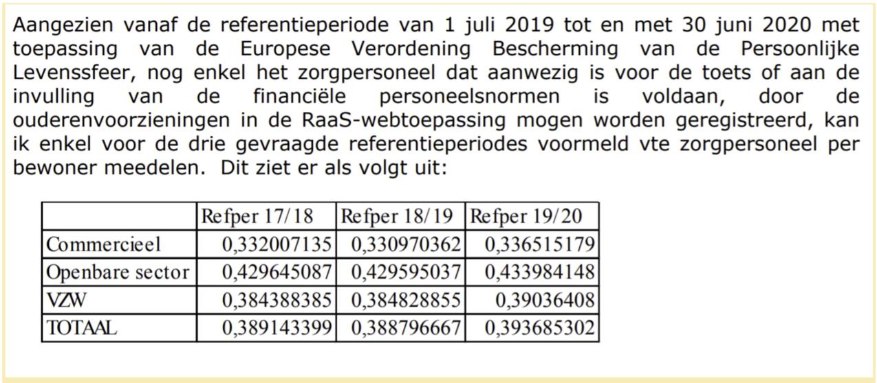 Zie hier de tabel met de personeelsbezettingen uit de schriftelijke vraag van Lise Vandecasteele aan minister Wouter Beke (vraag nr. 155 van 23 november 2020).
