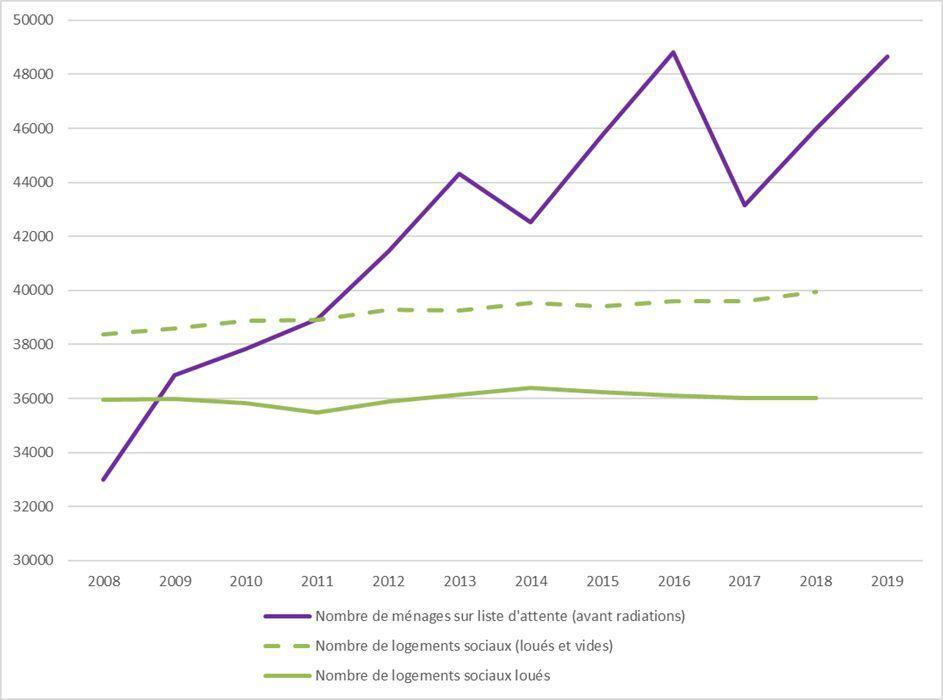 Evolutie van de sociale huisvesting in Brussel sinds 2008.