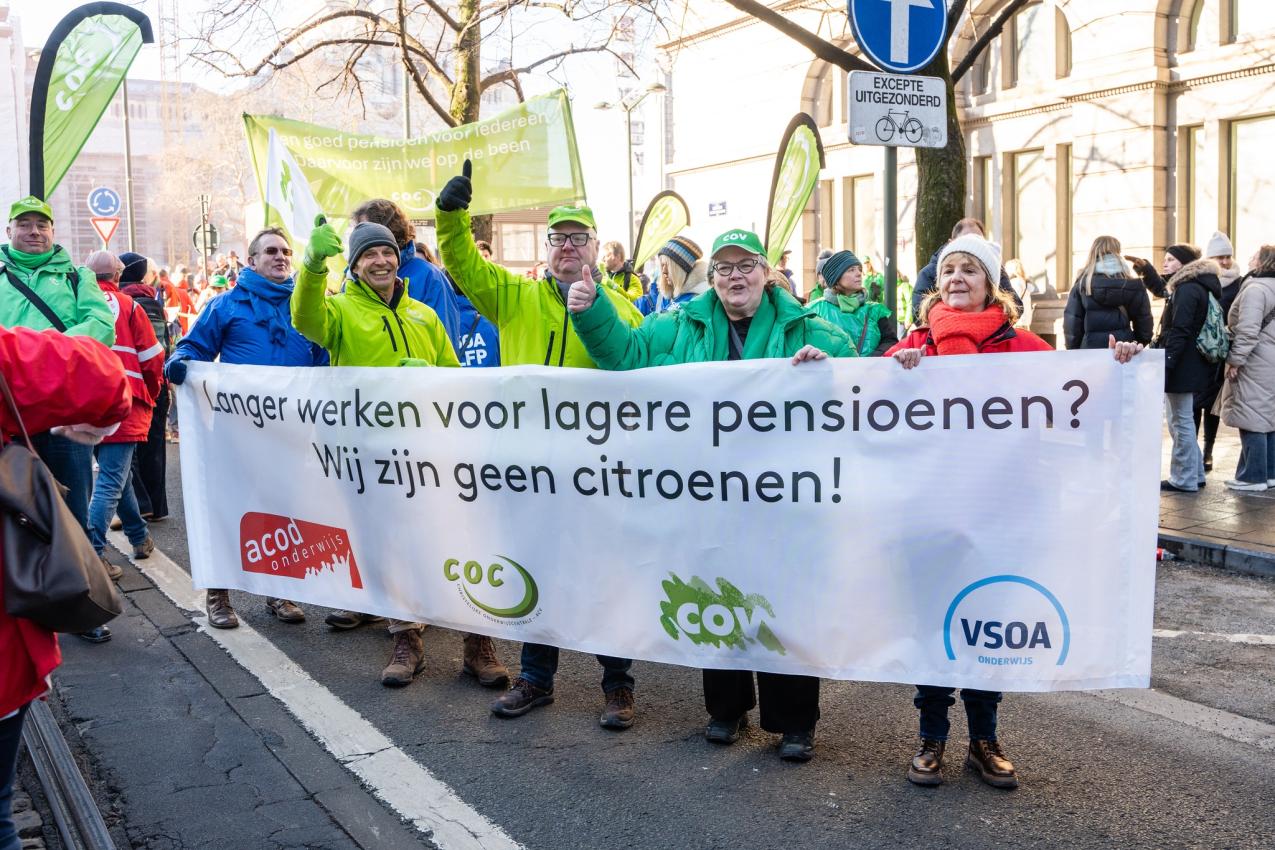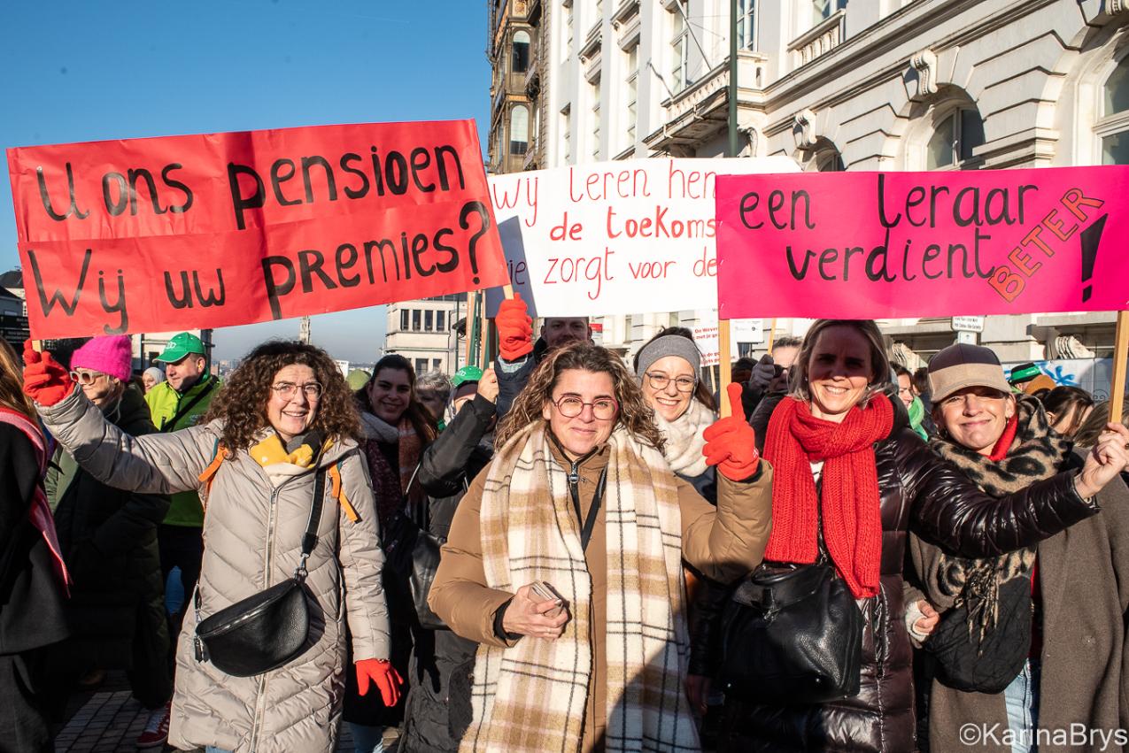 De leerkrachten en hun vakbonden hebben hun verzet al georganiseerd: een op 26 november organiseerden ze een 24-uursstaking, In januari een staking van 48 uren, met een historische betoging die meer dan 30.000 leraren, leerlingen en ouders samenbracht in de straten van Brussel op 27 januari. Ze zijn niet van plan het hierbij te laten: op 13 februari zullen ze zich aansluiten bij een bredere beweging tegen de nieuwe Arizona-regering. Ze zullen zich aansluiten bij Nederlandstalige leerkrachten en werknemers in de publieke en private sector om de pensioenen te verdedigen. In maart-april volgt een actieweek.