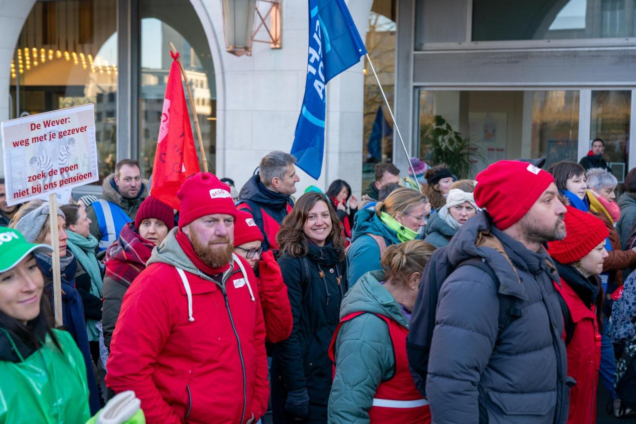 13 januari 2025: 47.000 leerkrachten in staking, 21.000 van hen zakten af naar Brussel voor een grote betoging tegen de pensioenplannen van De Wever en Bouchez. Voor veel leerkrachten was het de eerste keer dat ze staakten of betoogden. Sommigen werden die dag voor het eerst lid van een vakbond.
