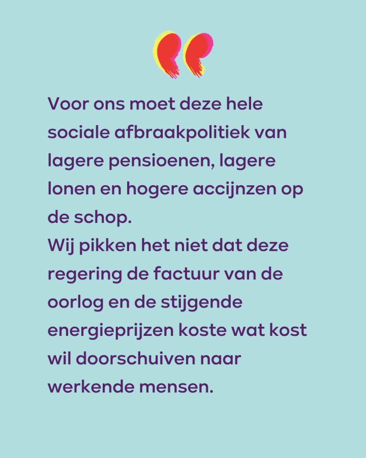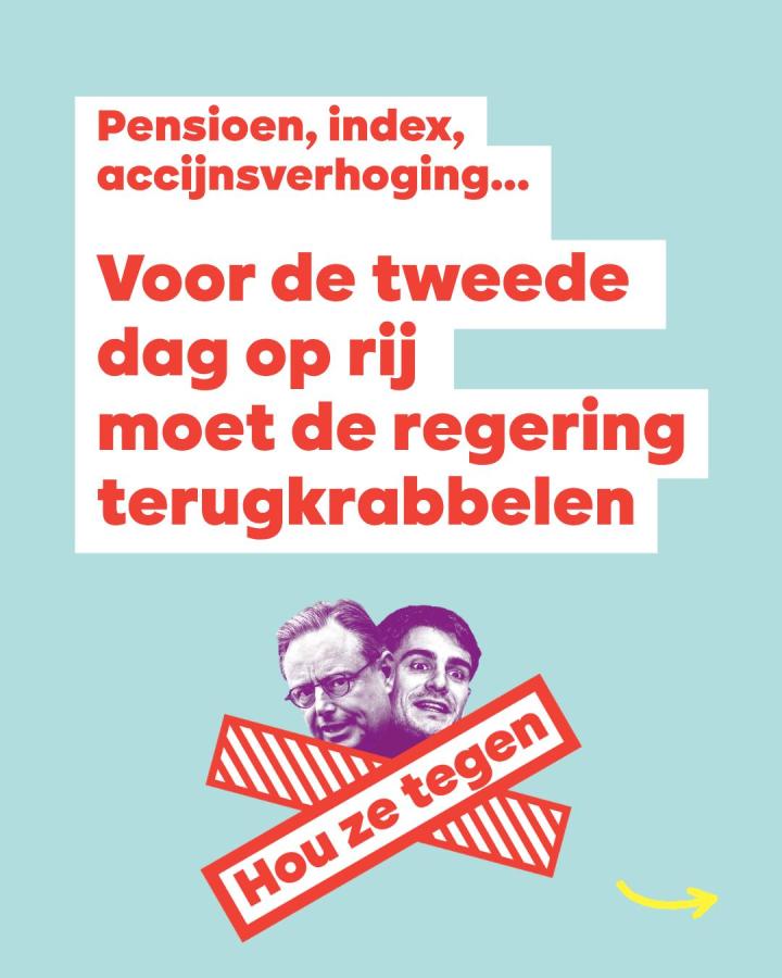 Hedebouw besluit: “De regering staat een pak minder sterk dan ze probeert te doen uitschijnen en voelt de druk van de vakbonden, de brede sociale beweging en de algemene onvrede van de bevolking. Dit uitstel is een eerste stap. Voor ons moet deze hele sociale afbraakpolitiek van lagere pensioenen, lagere lonen en hogere accijnzen op de schop. Wij pikken het niet dat deze regering de factuur van de oorlog en de stijgende energieprijzen koste wat kost wil doorschuiven naar werkende mensen. Wij zullen de druk blijven opvoeren tot deze plannen volledig van tafel zijn.”