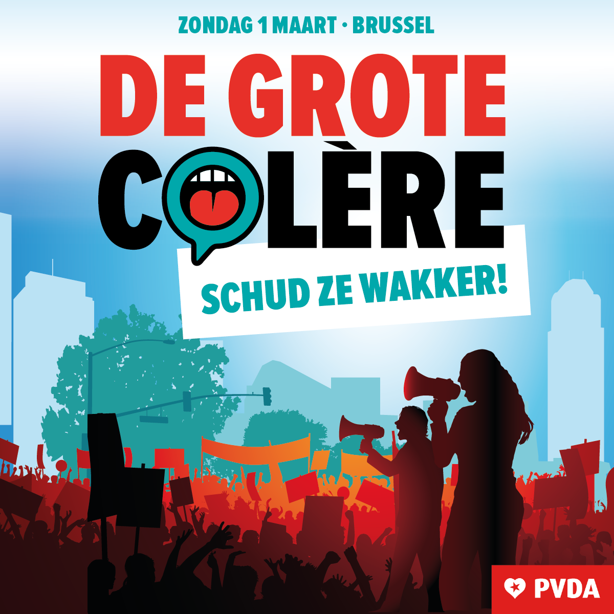 De PVDA organiseert haar ‘mars voor een andere politiek’ op 1 maart in Brussel. Afspraak voor De Grote Colère om 13u30 aan het Centraal Station te Brussel.