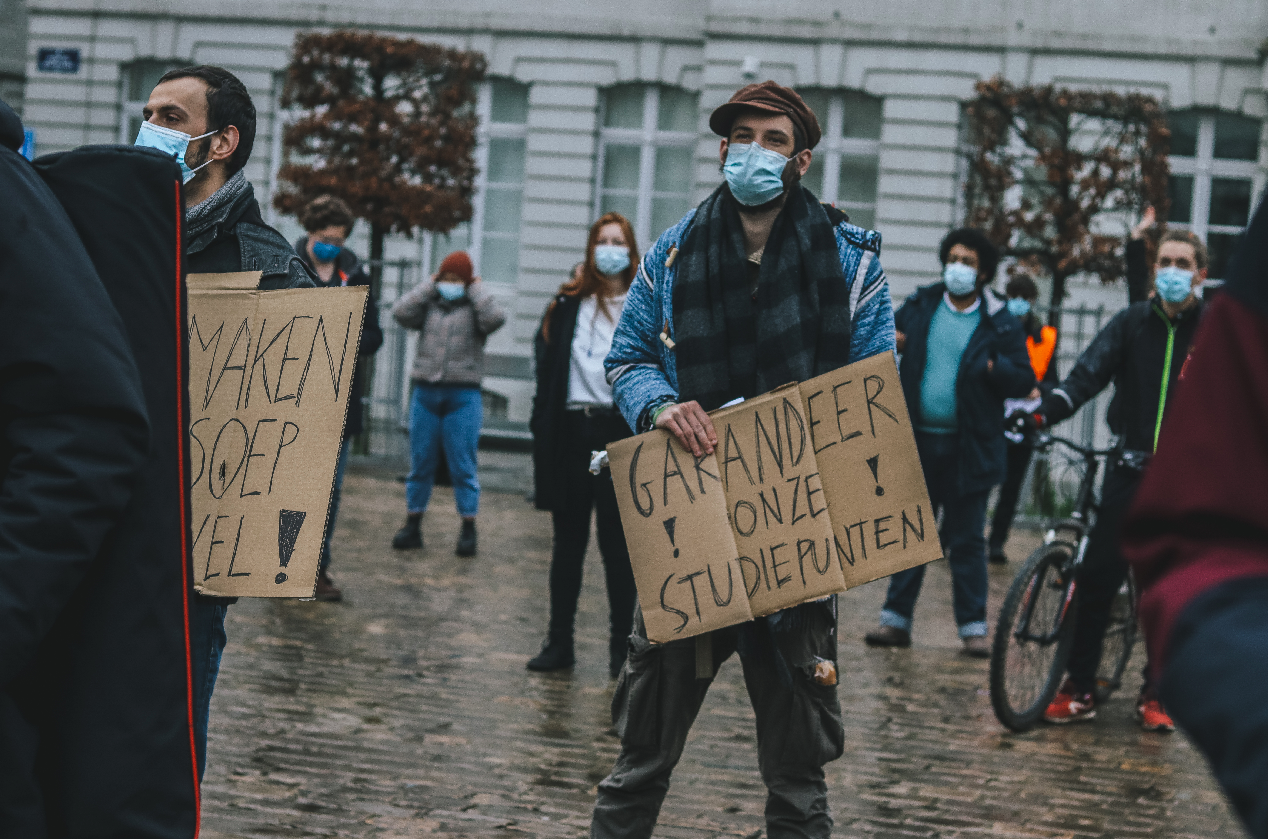 Daarom verzamelde de studentenbeweging 10.000 handtekeningen voor de petitie ‘Wij willen perspectief’. Die gaven ze af in een grote pot soep. Met de petitie eist Comac dat geen enkele student studiepunten verliest. “Wanneer een student buist op een examen, verliest deze studiepunten. Wie te veel studiepunten verliest, kan nadien zijn of haar studie niet meer verderzetten”, legt Laenen uit. “We mogen niet accepteren dat mensen door de coronacrisis worden gestraft.”