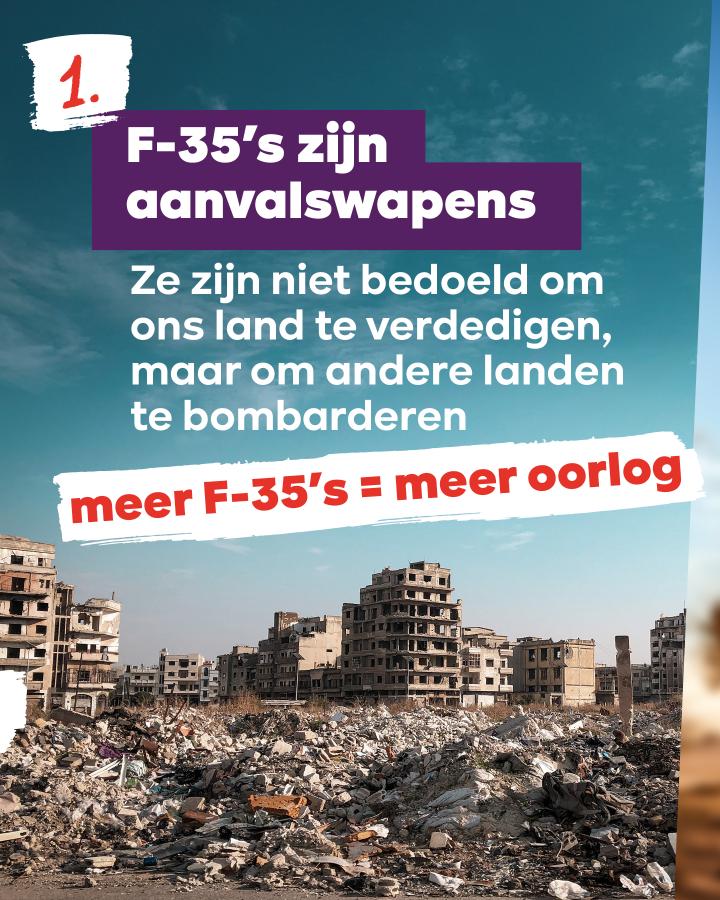 Wij benadrukken dat de F-35 geen defensief, maar een offensief aanvalstoestel is. “De F-35 is niet ontworpen om het Belgisch grondgebied te verdedigen, maar om buitenlandse militaire operaties uit te voeren”, aldus Peter. “Israël gebruikt het toestel in Gaza, de VS bij bombardementen op Venezuela. Zulke wapens dragen niet bij tot vrede of stabiliteit.”