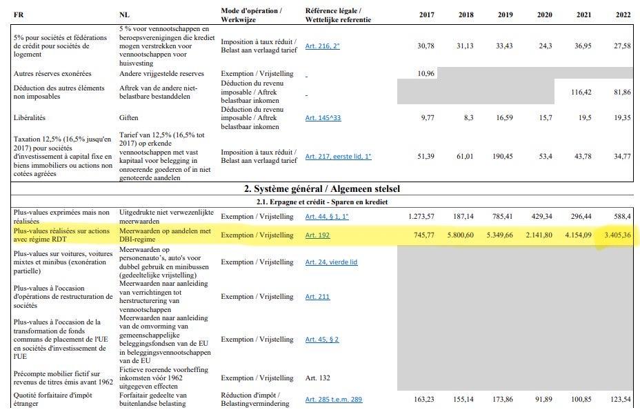 De vrijstelling op meerwaardebelasting verloopt volgt de regels van het DBI-regime en is een fiscaal achterpoortje dat veel grote bedrijven en holdings in staat stelt om geen belastingen te betalen op de (miljoenen)winst die ze maken bij de verkoop van aandelen. Het nultarief op meerwaarde bestaat al sinds 1991 en bestaat in vele andere landen niet.