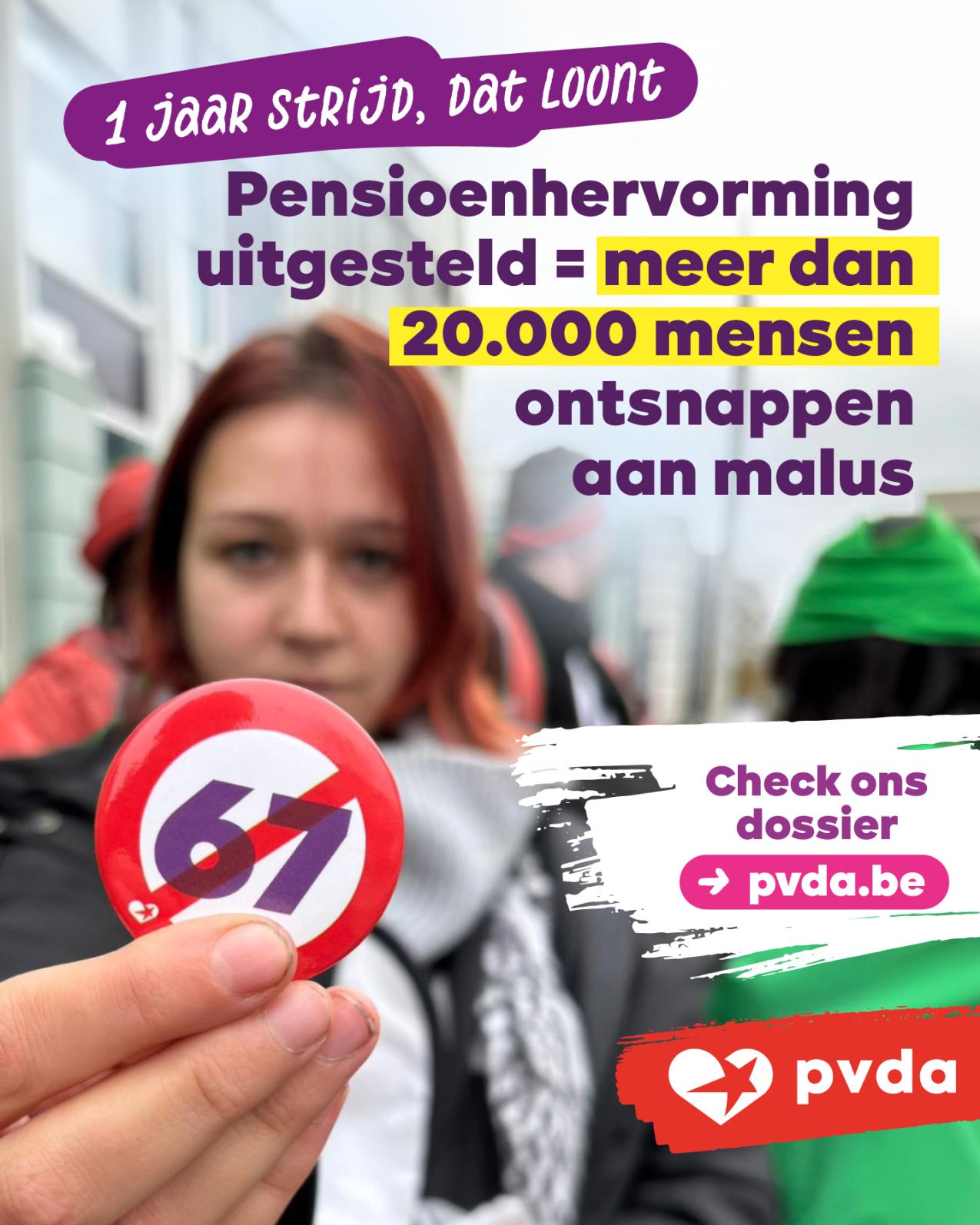 Er vonden inmiddels 13 nationale actiedagen plaats tegen de Arizona-regering. De afbraak van het recht op pensioen is een van de centrale bezorgdheden. Onder druk van het sociaal verzet zag de regering zich genoodzaakt de maatregelen die het recht op vervroegd pensioen inperken (de malus en de verstrenging van de loopbaanvoorwaarden), af te zwakken. Daardoor verliezen deze maatregelen ongeveer een kwart van hun impact, zo blijkt uit de cijfers die de PVDA opvroeg bij Pensioenminister Jan Jambon. Ook een reeks andere pensioenmaatregelen uit het regeerakkoord werden afgezwakt of zelfs volledig geschrapt. Daarnaast werden ook de beperking van de nachtpremies en de wet-Quintin, die een aanval bevat op onze democratische rechten, aangepast.