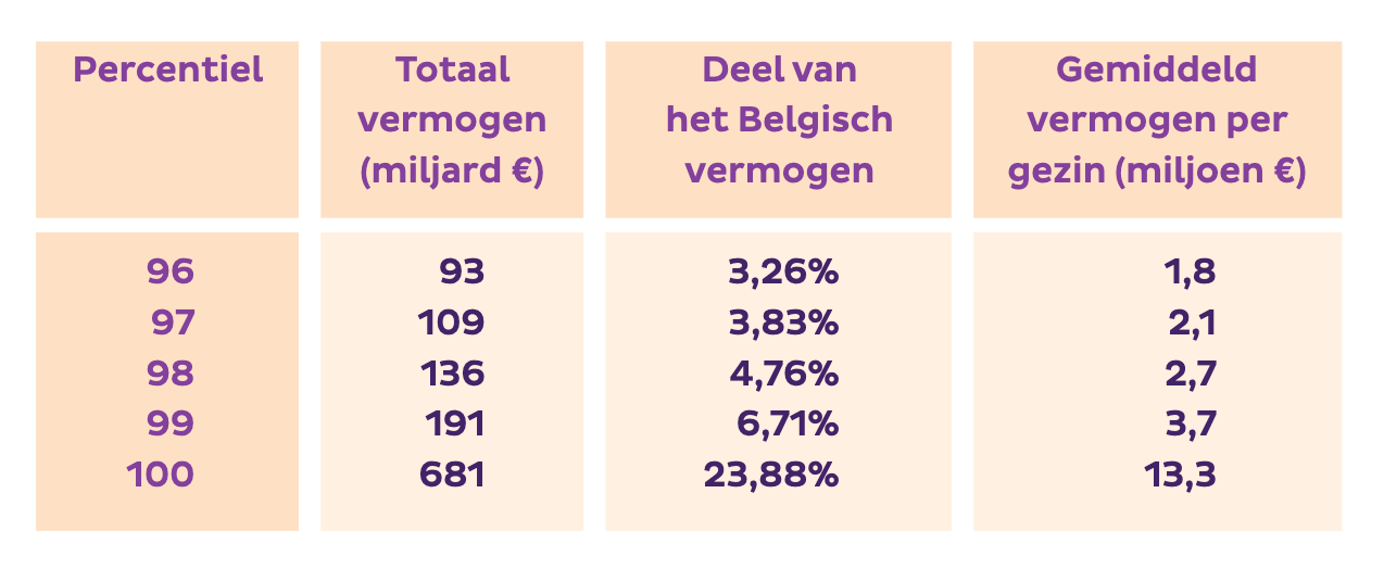 Dit resulteert in de volgende vermogensverdeling voor de vijf rijkste percentielen: